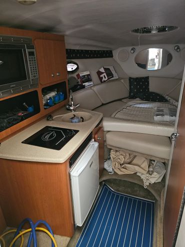 Eleganza sportiva e funzionalità si incontrano a bordo della Crownline 270 CR, una sport cruiser del 2008 ideale per chi cerca un’imbarcazione versatile, confortevole e pronta a vivere il mare in ogni sua sfumatura. Con i suoi 8,15 metri di lunghezza, linee moderne e una carena solida e performante, offre una navigazione stabile e sicura, perfetta tanto per rilassanti weekend in famiglia quanto per uscite dinamiche con gli amici. Spinta da un affidabile Volvo Penta 5,7 GXI/DP con sole 630 ore di moto, la barca unisce potenza e affidabilità a consumi ottimizzati. Gli interni sono pensati per garantire la massima abitabilità: cabina accogliente con letto matrimoniale e cuccetta supplementare, cucina attrezzata con frigorifero e fornello, bagno completo con wc marino e doccia. All’esterno non mancano ampie aree prendisole a prua e a poppa, oltre a comode sedute per vivere ogni momento in pieno relax.